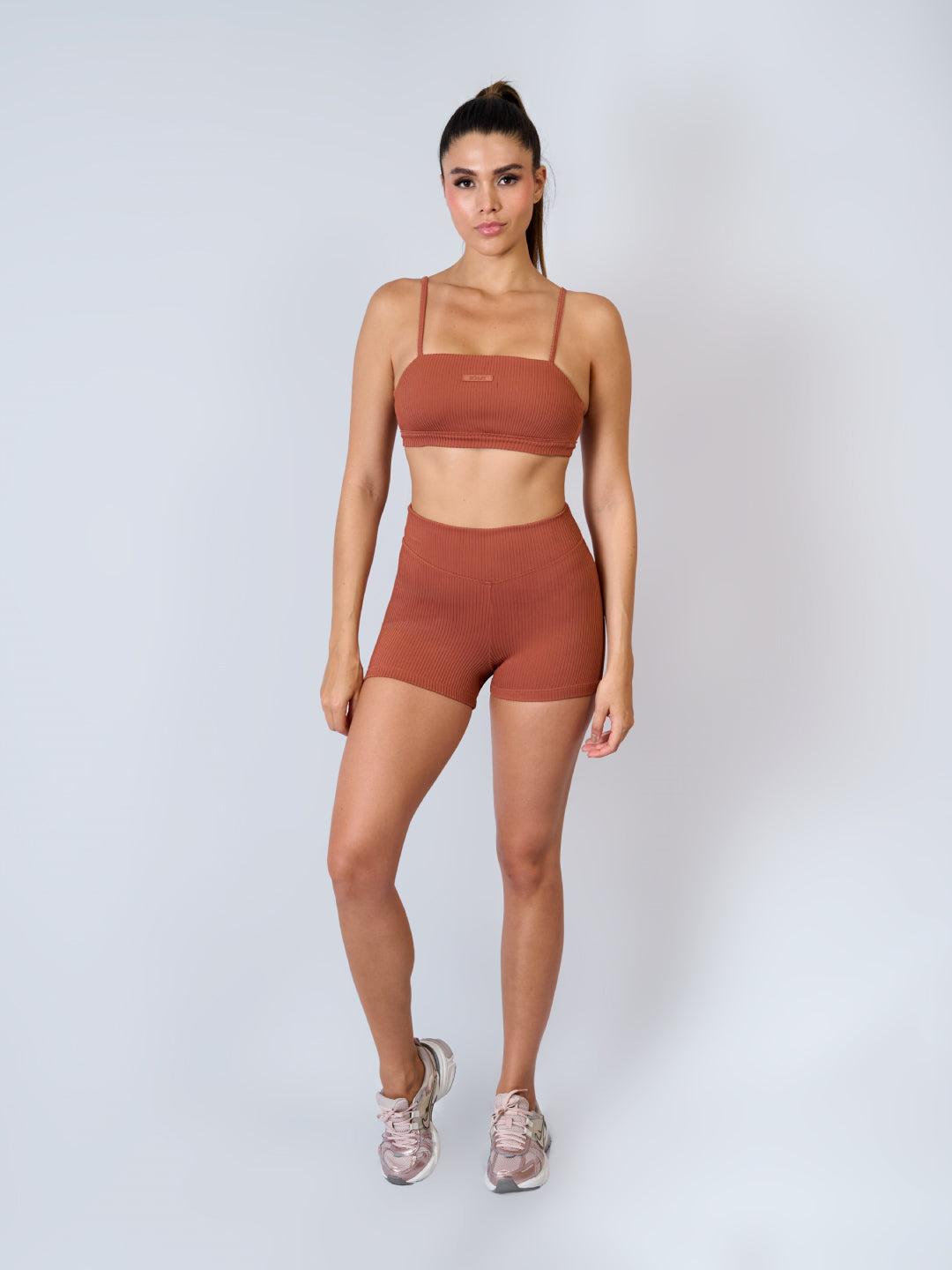 These Appearance Ribbed Shorts feature a high waistband and a pointed cut designed to accentuate the derriere elegantly. Crafted from a blend of 86% polyamide and 14% elastane, they offer exceptional stretch and comfort, making them ideal for active wear or casual elegance. Their anatomically inspired design ensures a flattering fit while providing the flexibility needed for unrestricted movement.