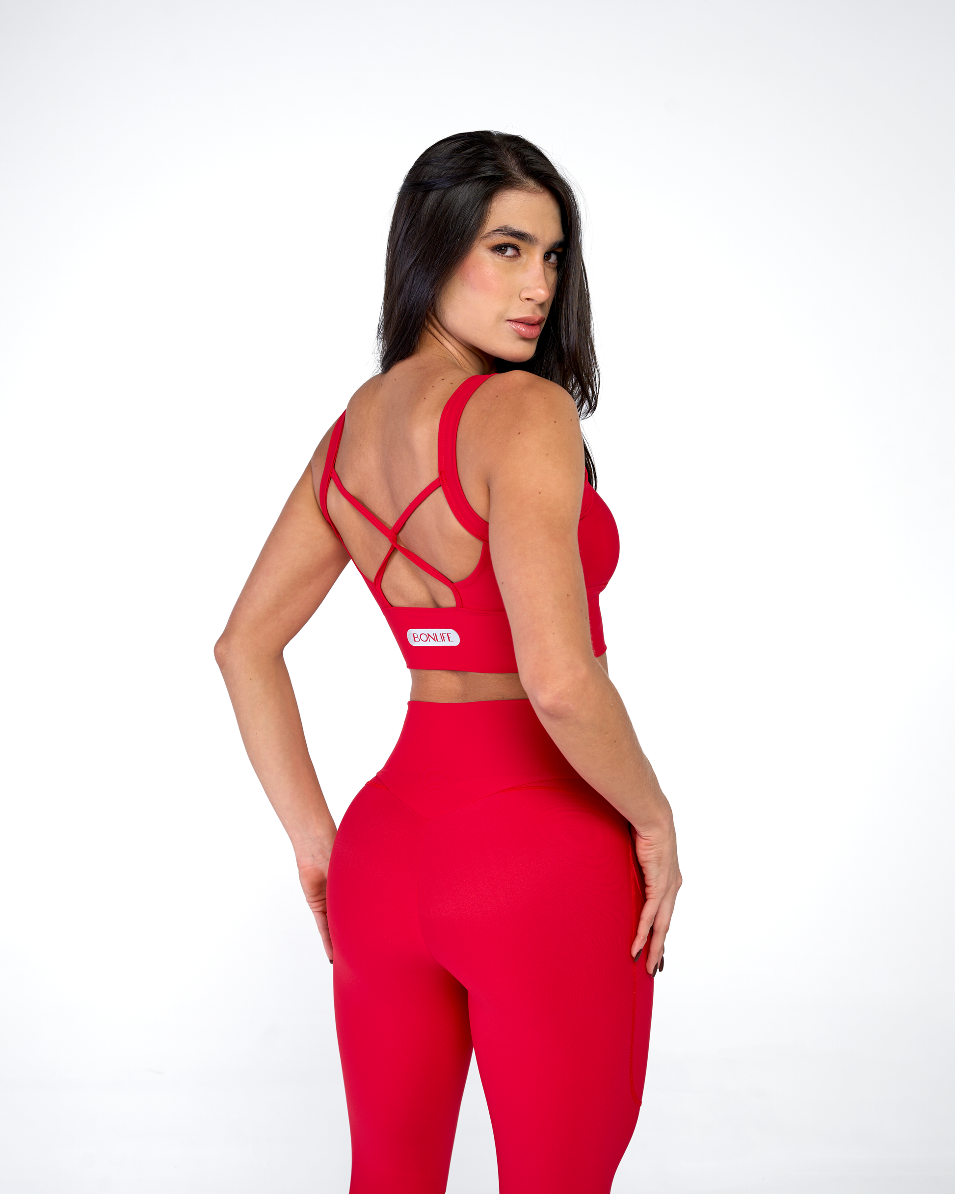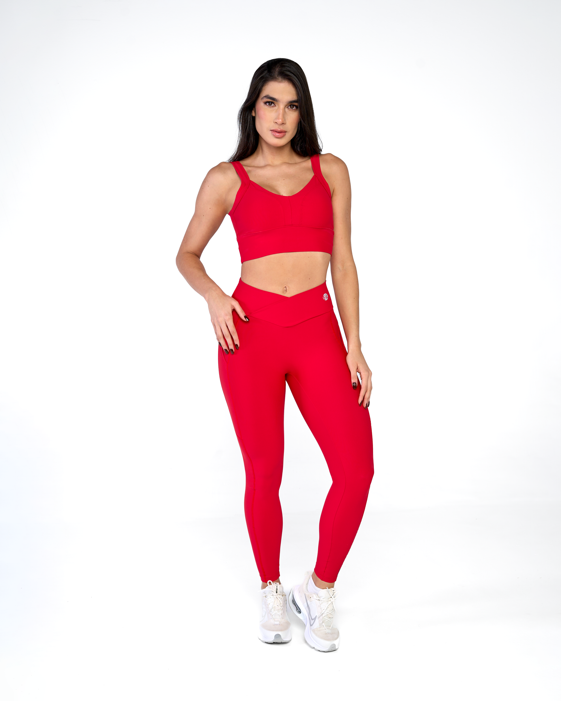 A bust-enhancing top with a V-neckline that highlights your figure, paired with a wide waistband that stylizes the silhouette. Its athletic back with crisscross slants offers support and freedom of movement, while the soft-touch, stretchy fabric ensures total comfort. The reflective appliqué adds a modern and functional detail to stand out.