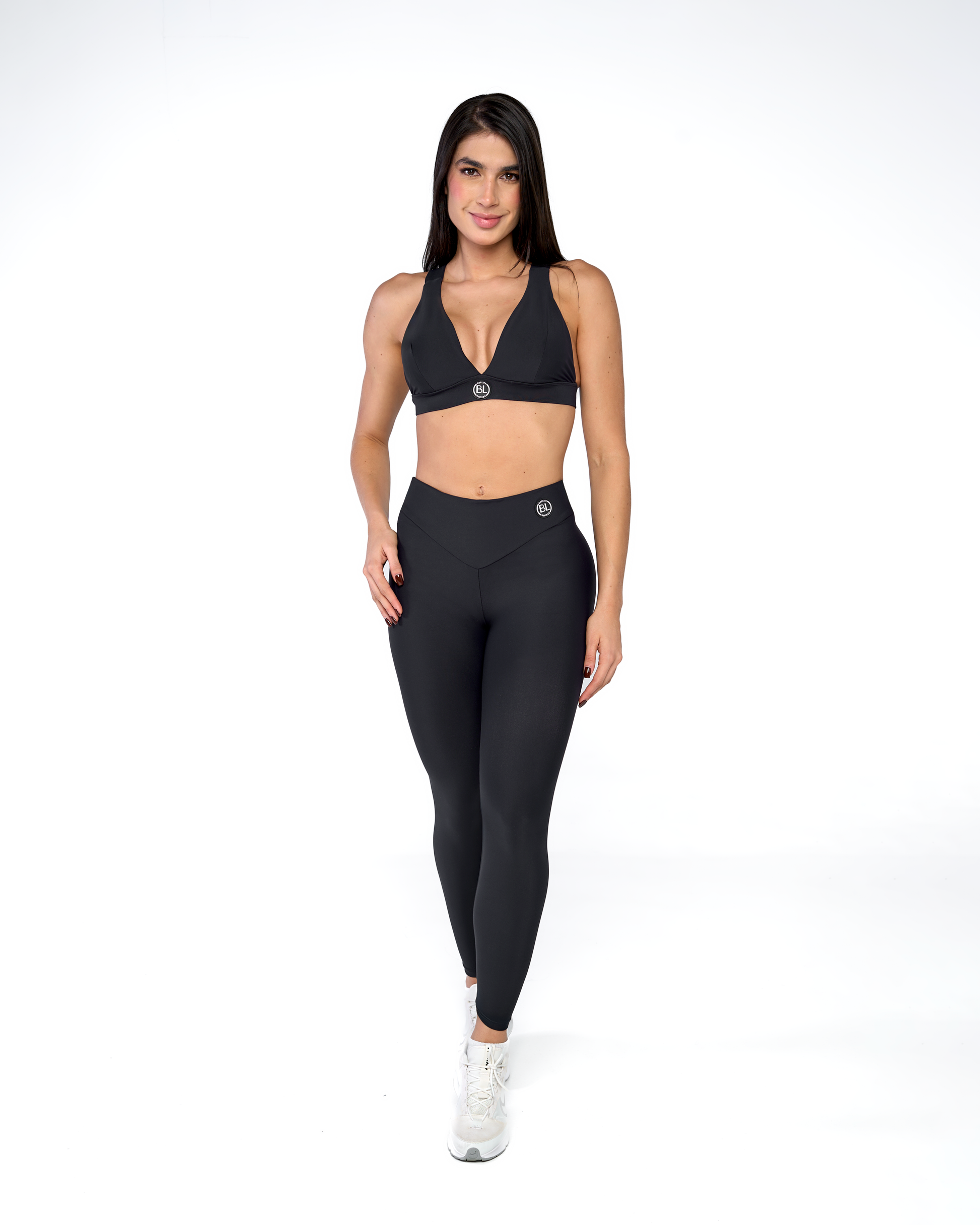 A bra with cups and bust enhancement, designed with straps and a girdle that incorporate internal elastic for added support. Its soft-touch, stretchy fabric ensures comfort and freedom of movement, while the reflective appliqué adds a modern and functional touch.