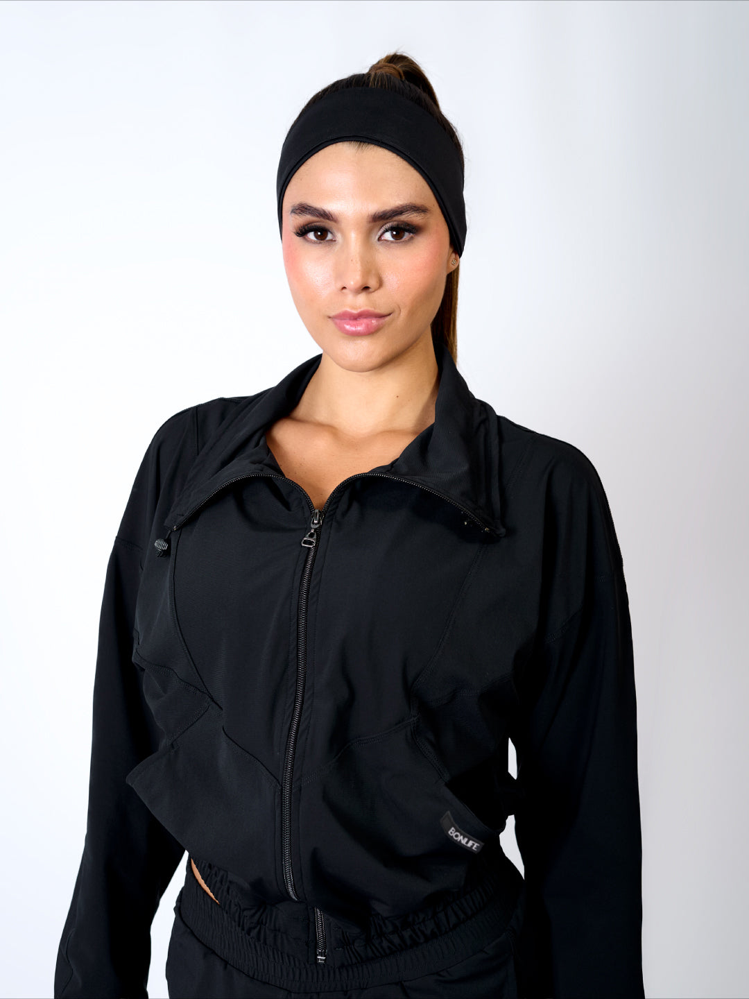 The Tropika Jacket offers a contemporary oversized fit with an adjustable neckline for personalized comfort. Its contrasting front closure adds a refined touch, while elasticized waist and sleeves ensure a secure fit and enhance mobility. Crafted from a durable blend of 78% nylon and 22% spandex, this jacket delivers lightweight stretch and resilience, making it ideal for active lifestyles with a sporty edge.